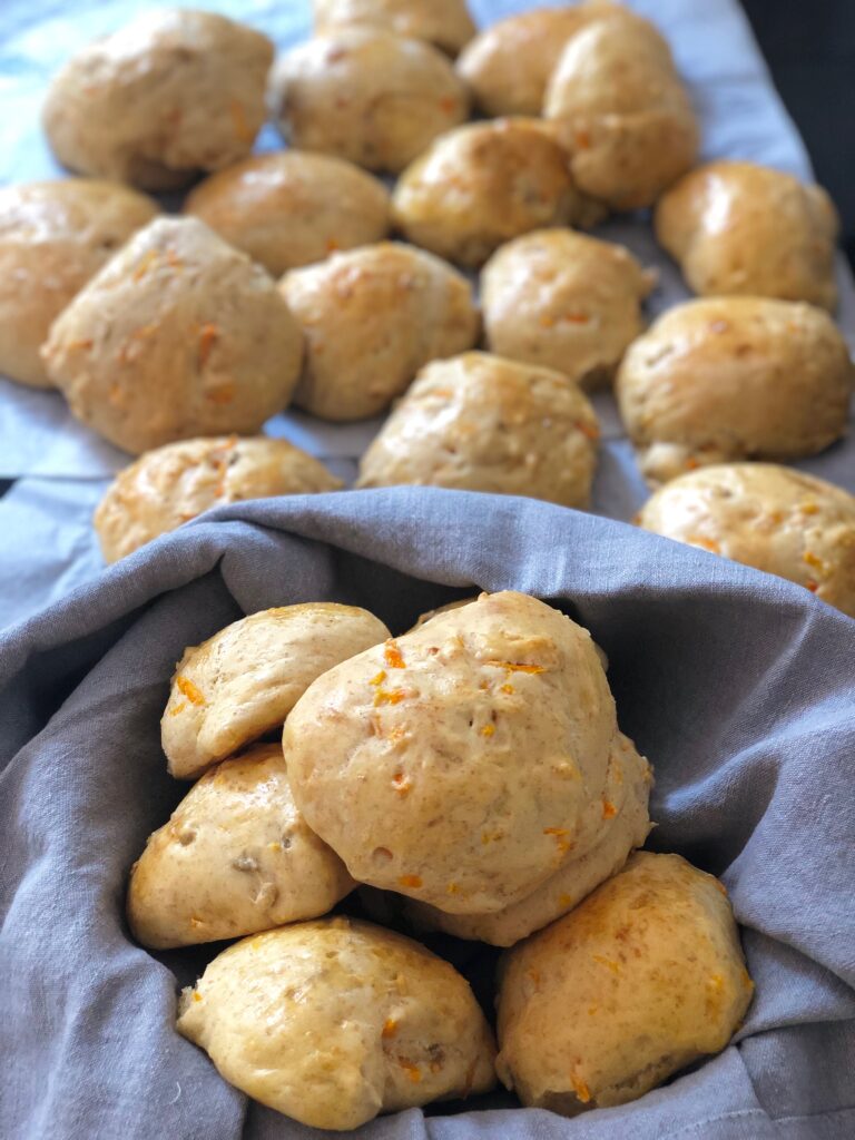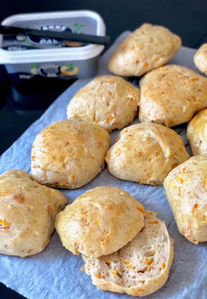 Når jeg bager boller, ender det næsten altid med at være gulerodsboller – vi får dem altid, når vi fejrer fødselsdag eller ´bare´ som hverdagsboller! Jeg bruger opskriften fra Mara Vestergaard – kan findes HER.
