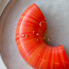 Årets første julekage består af en svampet krydderkage-appelsinbund, saltkaramelmidte og en blød nougat-chokolademousse samt pyntet med en fin rød- og aprikosfarvet glaze. Kagen blev spist sammen med gode venner og faldt bestemt i god jord! Den passer til 4-6 personer. Redskaber; en rund springform (18-20 cm i diameter), en rund 'savarin' silikoneform (16 cm). Kan bl.a. købes HER. ...